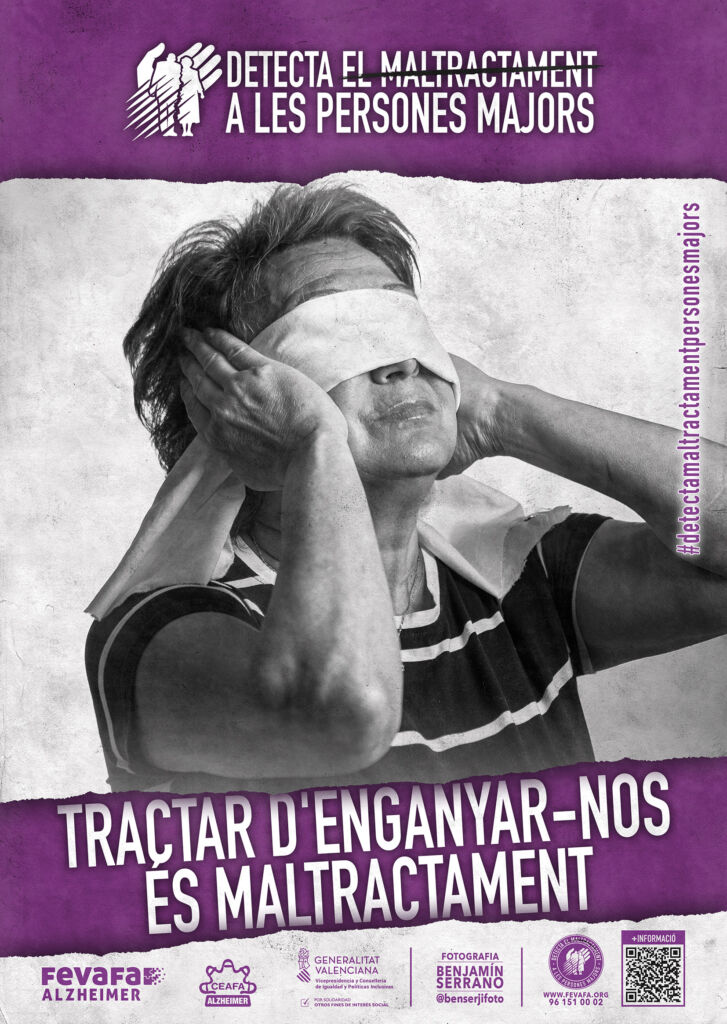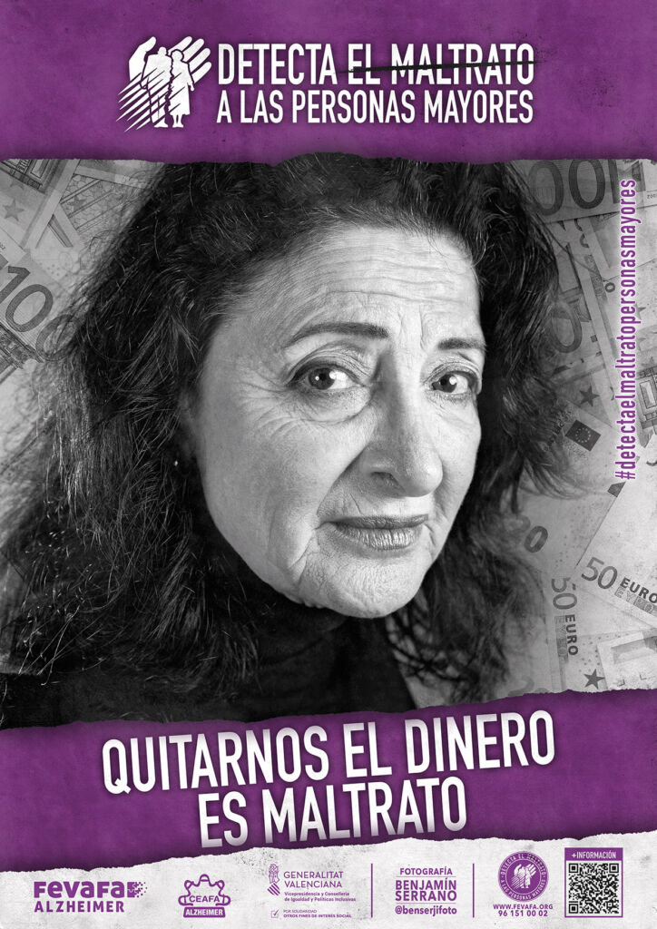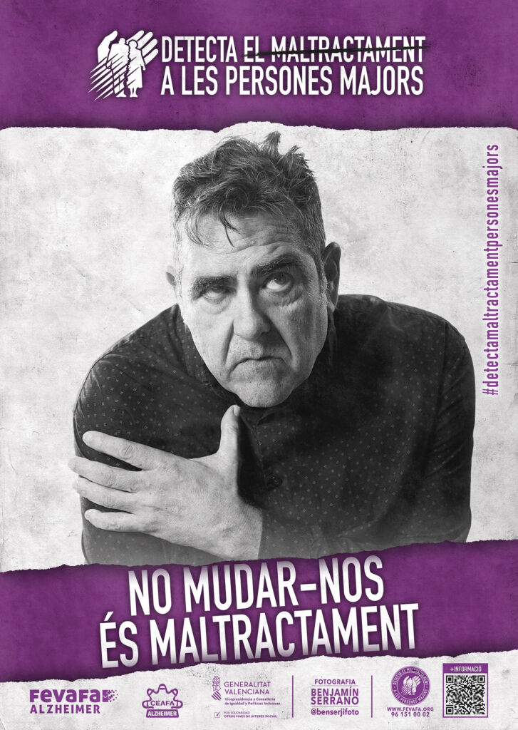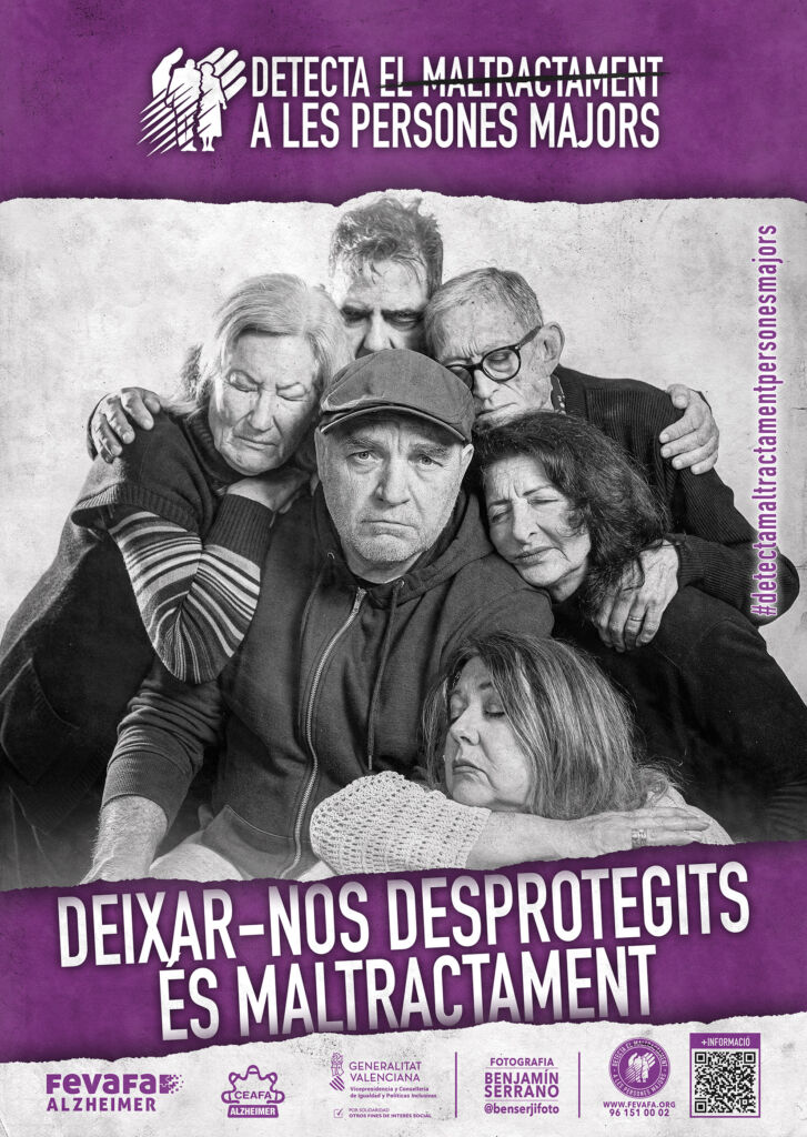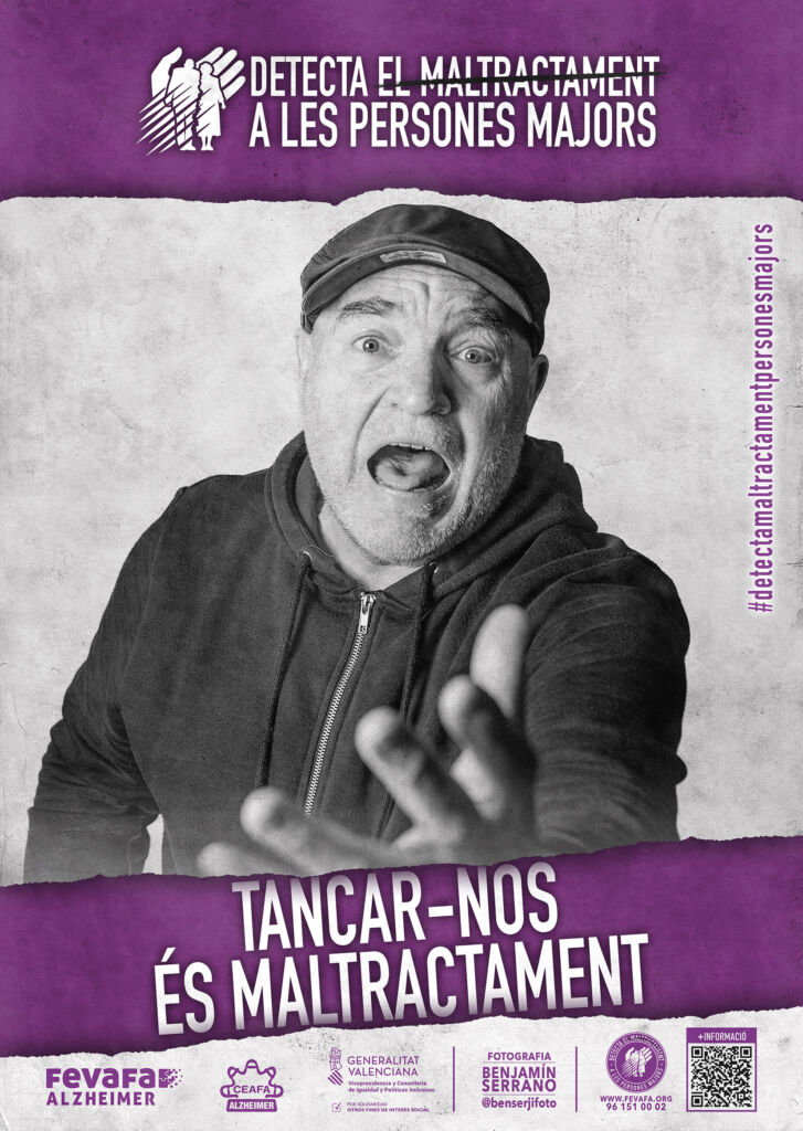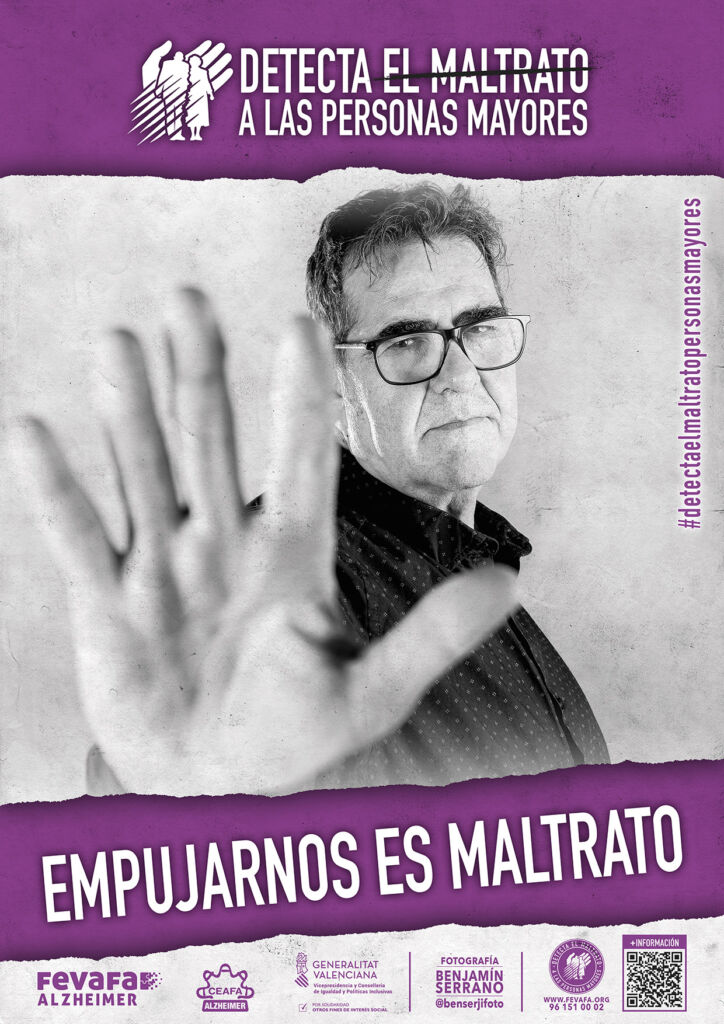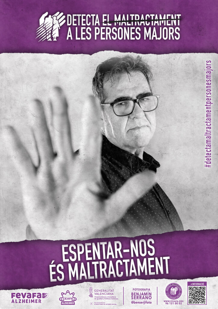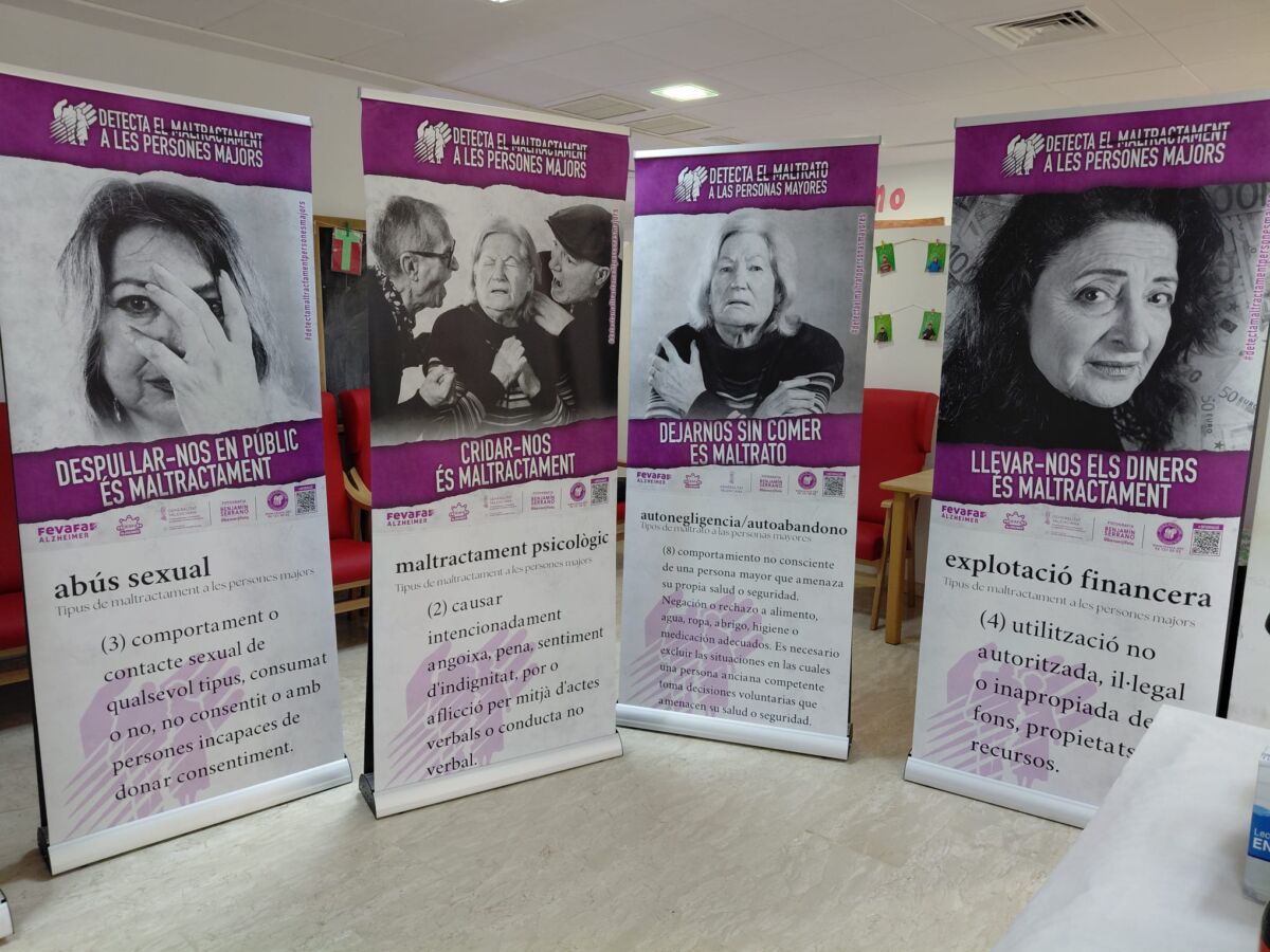 Esta exposición, concebida con carácter itinerante, está compuesta por 10 roll-ups a doble cara (castellano y valenciano), cada uno de ellos centrado en un tipo de maltrato que puede afectar a las personas mayores. A través de imágenes y mensajes directos, la muestra invita a la reflexión y busca visibilizar situaciones que, en muchas ocasiones, permanecen ocultas o normalizadas en la vida cotidiana.