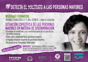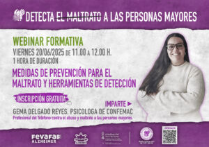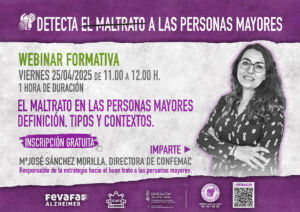 A continuación, tienes la programación de las 4 webinars planificadas durante este año dentro de las actividades previstas en el proyecto “Detecta el maltrato en las personas mayores”.